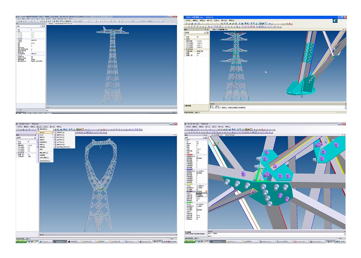 我公司采用《TwSolid塔架式鋼結(jié)構(gòu)三維實(shí)體放樣軟件》,完全參數(shù)化設(shè)計(jì),三維互動(dòng)修改,任意修改控制尺寸、塔材規(guī)格和依存關(guān)系等參數(shù),全塔自動(dòng)實(shí)時(shí)跟隨調(diào)整。放樣數(shù)據(jù)準(zhǔn)確(所見即所得),模擬了鐵塔的安裝,準(zhǔn)確地反映了鐵塔的空間碰撞,及做出正確的切角方案。